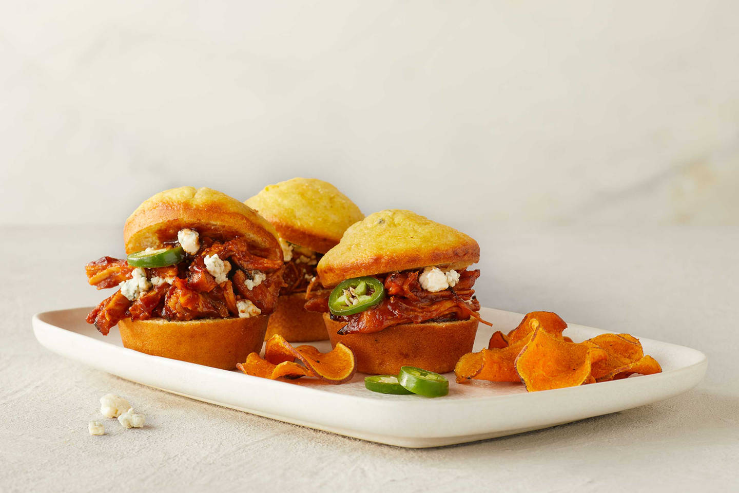 Blue Cheese Corn Bread Pulled Chicken Sandwiches